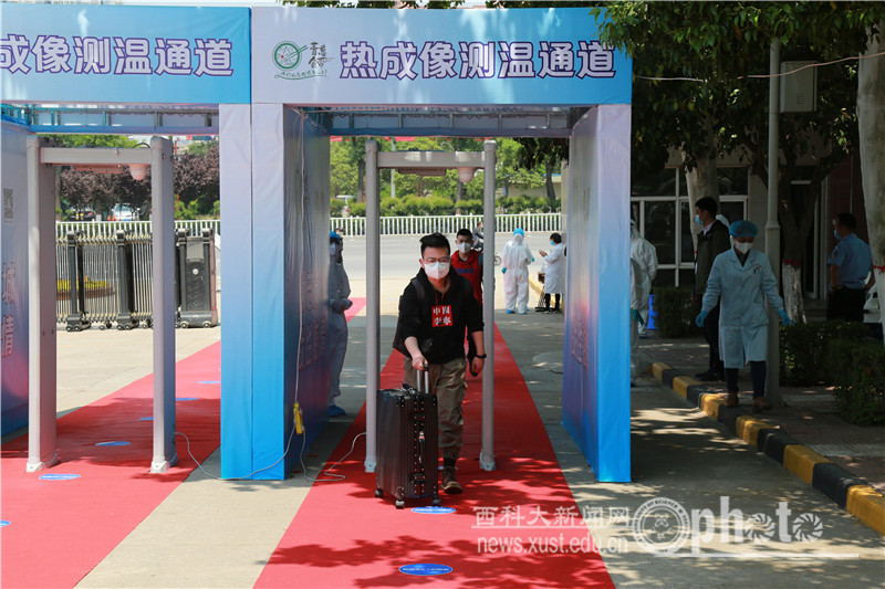 春暖时节,雏燕归来。4月28日,我校首批70名学生陆续返抵学校。为此,学校采取严密措施,合理有序安排学生返校接站、入校核检、住宿管理、信息跟踪等各项工作,按照前期反复演练流程对接各个环节,确保防疫防控不落死角、不存盲点、不出疏漏。在接站点,学生在工作人员指引下,完成信息采录、初检登车,在到达西安的第一站即感受到学校的关怀和温暖。开学现场,消杀设备、隔离条带、检测仪器、处置场点、工作人员一应部署到位,执行有效。校领导先后带队亲赴各处场点检查指导,关心学生返校情况。首批返校学生在学校精心安排下安全返校,生活学习条件保障充分。这为学校下一阶段工作持续推进积累了经验,奠定了基础。