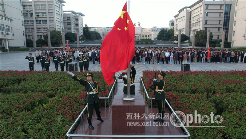 9月30日上午,“厚植家国情怀 青春告白祖国”国庆主题升国旗仪式在临潼校区骊山校园中心广场举行,共同庆祝中华人民共和国成立76周年。副校长曹明,学工部、校团委、建筑与土木工程学院学院、机械工程学院主要负责人和千余名学生代表参加了升国旗仪式。
