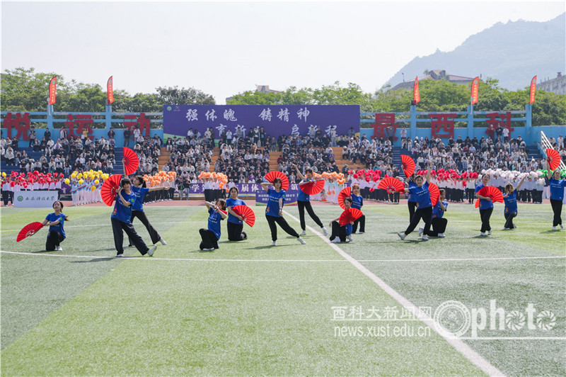 开幕式文体表演环节精彩纷呈,响扇、教职工健身操、花球表演、街舞表演、锅庄舞表演及技巧啦啦操依次登场,充分展示了我校师生积极向上、朝气蓬勃的青春风采。