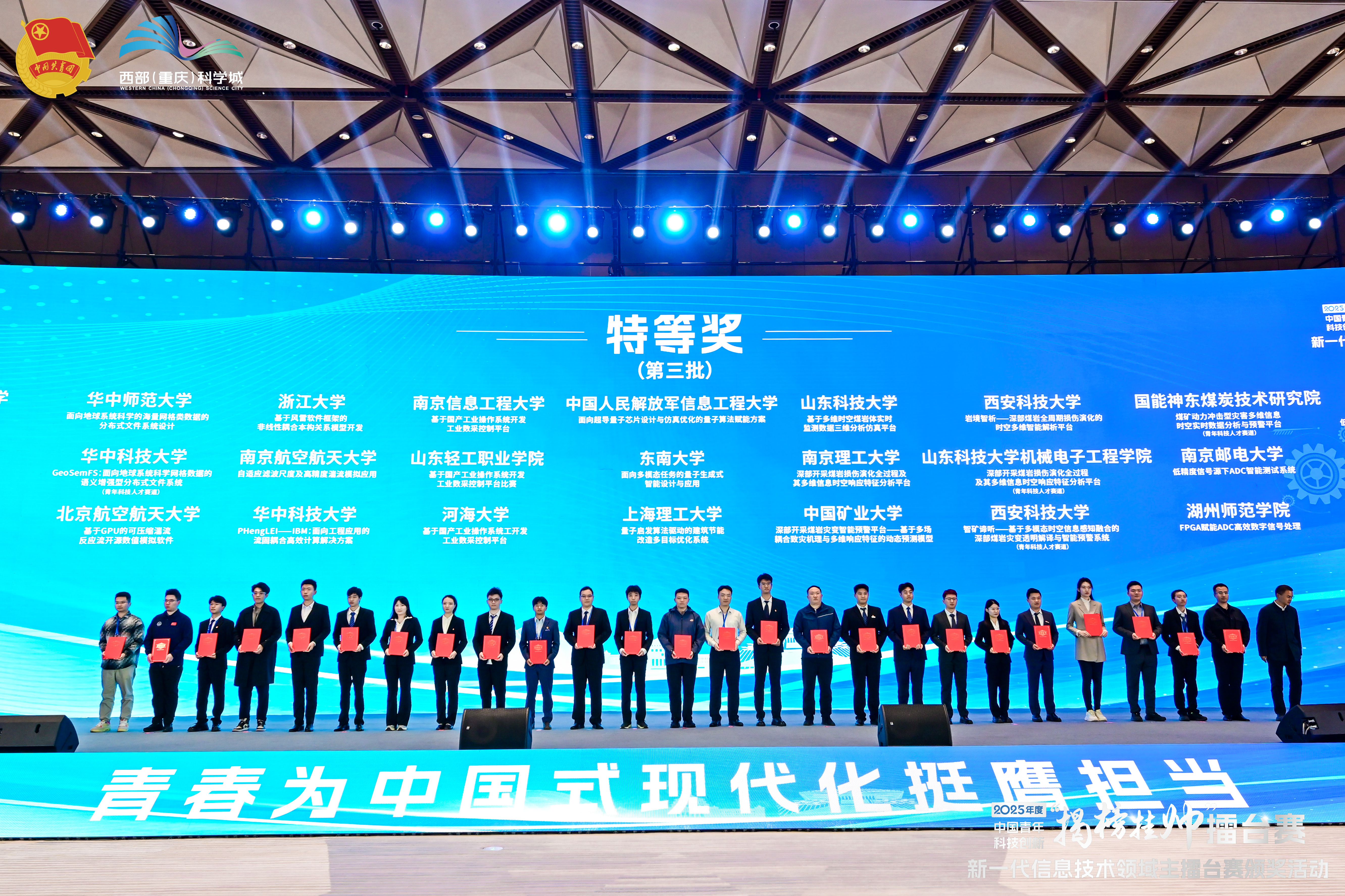 10月28日,第十九届“挑战杯”2025年度中国青年科技创新“揭榜挂帅”擂台赛在重庆落下帷幕,学校在“新一代信息技术、人工智能、新能源、高端装备、生物医药”等领域斩获12项国家级荣誉,实现质量和数量的历史性突破。其中,能源与矿业工程学院《岩境智析——深部煤岩全周期损伤演化的时空多维智能解析平台》《智矿谛听——基于多模态时空信息感知融合的深部煤岩灾变透明解译与智能预警系统》(青年科技人才赛道)、通信与信息工程学院《基于人工智能的工业仿真软件内核DAE求解技术研究》等3件作品斩获全国特等奖,电气与控制工程学院、人工智能与计算机学院、地质与环境学院、测绘科学与技术学院获得国家级奖项,进一步彰显了我校师生直面国家需求“揭榜”的勇气魄力,聚焦行业难题“攻坚”的担当作为。