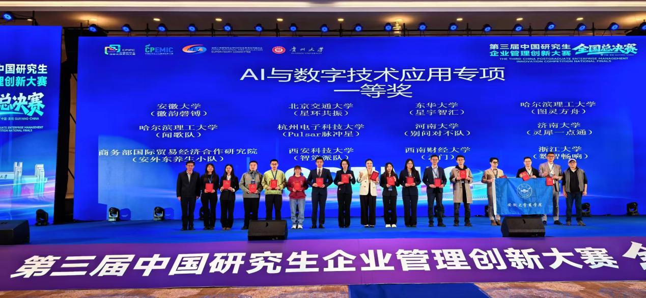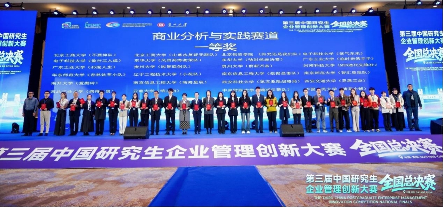11月7日至9日,由教育部学位管理与研究生教育司指导,中国学位与研究生教育学会、中国科协青少年科技中心共同主办,全国工商管理专业学位研究生教育指导委员会联合主办的第三届中国研究生企业管理创新大赛全国总决赛在贵阳落幕。本届大赛共设四类赛道,我校学子奋勇拼搏,在三个赛道中均摘得一等奖,展现出卓越的综合实力与创新风采。