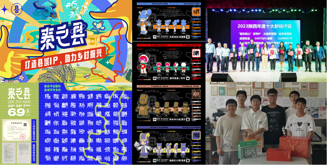 场景创新最终催生出丰硕成果:《秦风唐韵》茶礼于2025年量产上市,《十二花酥》文创礼盒成为市场爆款;学生作品不仅斩获德国iF奖、红点奖等国际荣誉,更在“互联网+”“挑战杯”等赛事中屡获佳绩;乡村振兴场景中诞生的“秦之县”IP,获评“陕西省年度十大IP”,相关包装设计已在7个县区落地转化。毕业生或入职网易、作业帮等知名企业,或自主创业、名校深造,成为场景化教学成效的最佳注脚。