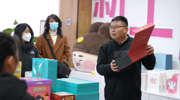场景创新的核心,是让学习回归真实问题。不同于传统教室授课,这门课程将课堂直接设置在商业终端、产业一线与乡村田野,构建起“三维实景教学场”。在西安大悦城快闪店,10余名师生化身“品牌导购+市场研究员”,一边向消费者推介《秦风唐韵》茶礼,一边收集市场反馈,将设计理念、品牌营销等专业知识融入真实交易场景;茶礼的创意源头则来自“赛事场景”——学生张焜仪在“新光奖”IP+主题大赛中,以“茯茶金花+秦唐文物”为灵感设计的作品,经课堂打磨、企业协作最终落地量产。而在乡村振兴一线,学生团队深入长武、佳县等县区的田间地头,实地考察农产品特性、调研农户需求,为刀剺面、空心挂面等特产打造兼具地域特色与市场竞争力的包装设计,让课堂延伸至产业最末端。