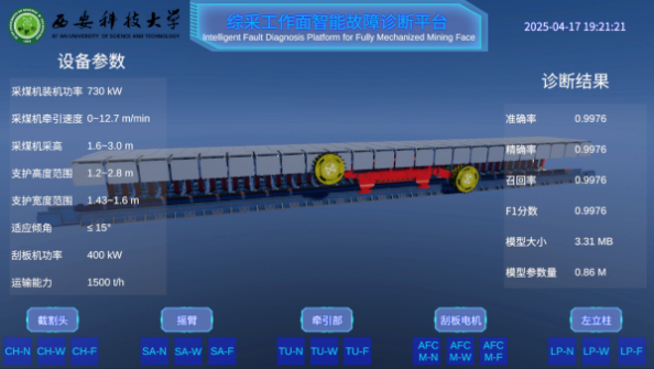会议期间,西安科技大学矿山装备智能运维团队联合陕西章启睿智能科技有限公司研发成果“矿山装备智能监测与运维系统”成为现场瞩目的焦点。该成果融合了多模态感知、人工智能算法与数字孪生技术等,可实现对矿山装备实时运行状态的精准感知、故障预警与预测性维护等核心功能,显著提升我国矿山开采本质安全水平与开采装备运行维护效率。